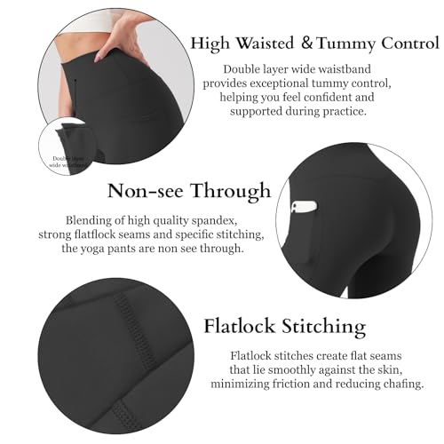 High Waisted Yoga Pants with Pockets, Tummy Control Workout Athletic Yoga Leggings for Women