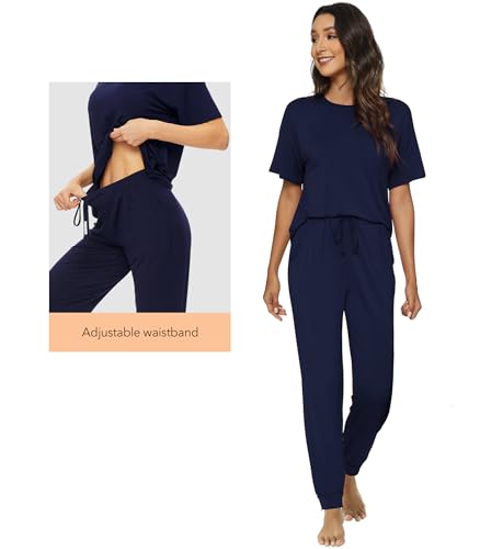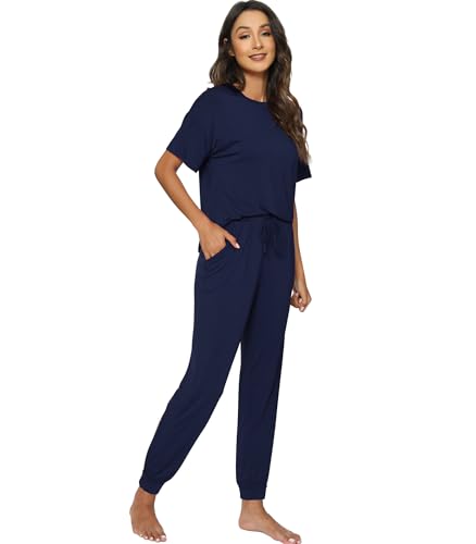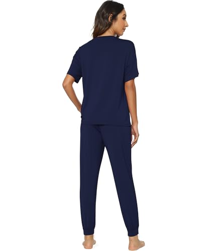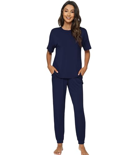 WiWi Viscose from Bamboo Pajamas Set for Women Short Sleeve Loungewear 2 Piece Outfit Long Pants Jogger Sets Pjs S-XXL