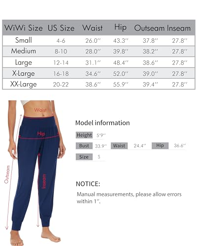 Specification: WiWi Women’s Viscose from Bamboo Joggers Casual Pajama Pants Loose Yoga Bottoms Comfy Lounge Sweatpants with Pockets S-XXL