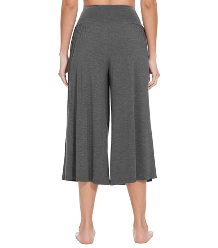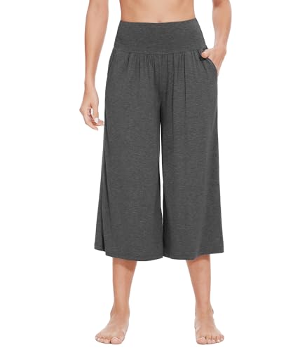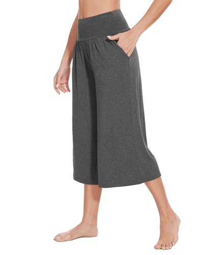 WiWi Women’s Wide Leg Capri Pants Viscose from Bamboo Palazzo Lounge Bottoms with Pockets High Waist Pajama Bottom S-XXL
