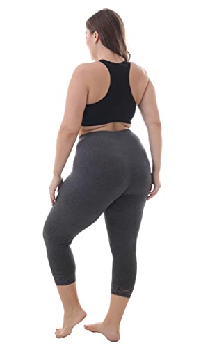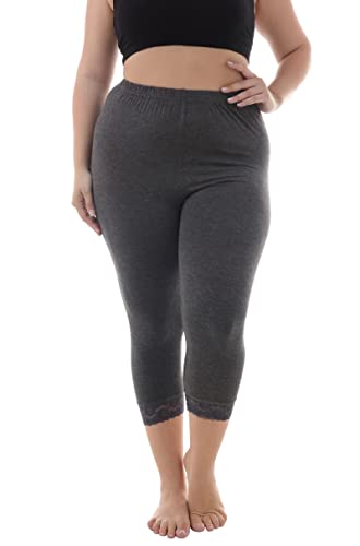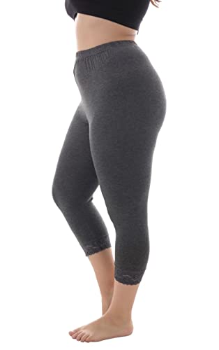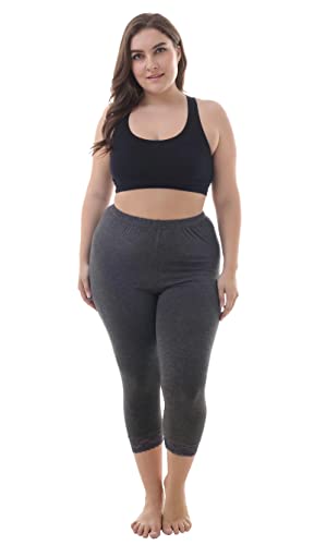 ZERDOCEAN Women’s Plus Size Soft Solid Capri Leggings Hem Lace Trim