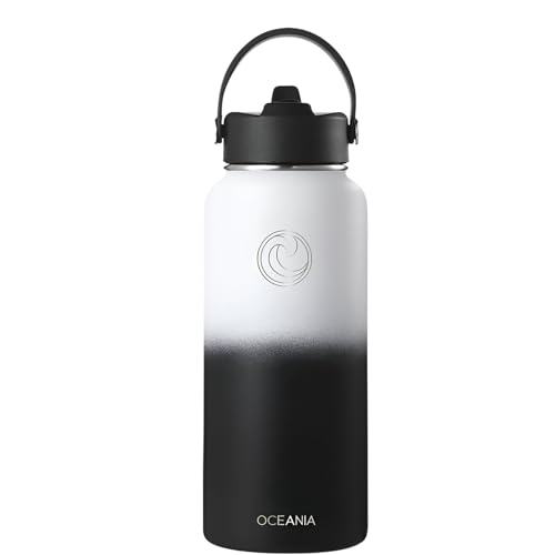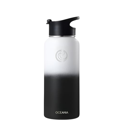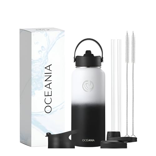 Specification: Oceania Flask 32oz Stainless Steel Water Bottles | Modern, Leakproof, Hydro BPA-Free, Insulated Water Bottle with 3 Lids, 3 Straws & 2 Straw Cleaning Brushes | Simple Camping & Hiking Water Bottles