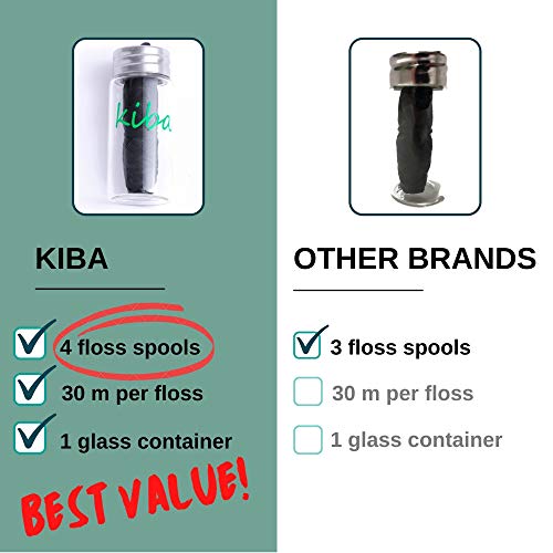 Specification: Kiba Bamboo Charcoal Floss w/Reusable Floss Container 5 pc Kit (1 Glass Floss Container + 4x30m Dental Floss Refills) – Eco Friendly Floss w/Candelilla Wax – Mint – Vegan