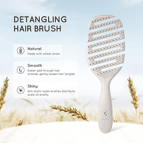 Hair Brush, Vented Detangling Brush for Curly, Thick, and Straight Hair – Gently Detangles and Smooths hair – Works on Wet or Dry Hair – Eco-Friendly and Biodegradable – Unisex