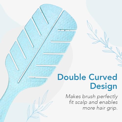 Jovica Detangling Hair Brush for Women Men and Children – Straight Curly Wet and Dry Hair – Leaf Shape (Blue)