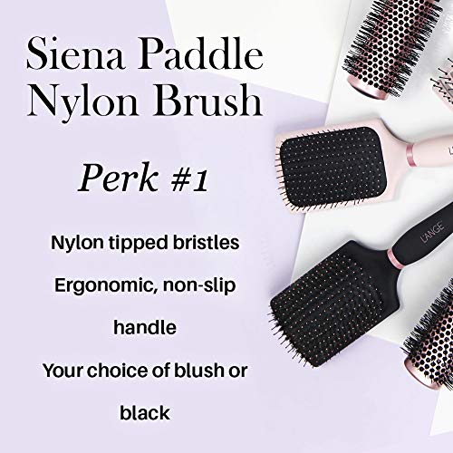 L’ange Hair Siena Paddle Nylon Brush | Helps Groom and Detangle All Types of Hair | Heat-Resistant Nylon-Tipped Bristles | Black