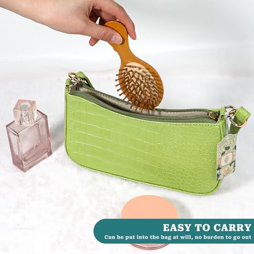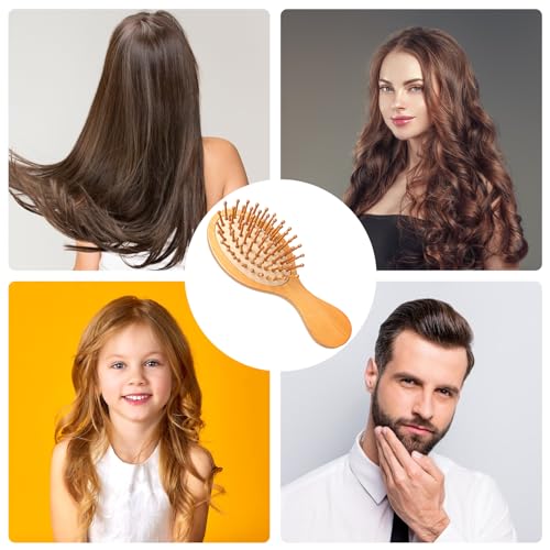 Mini Bamboo Brush for Hair Growth, Natural Wooden Massager Brush with Handle Design and Anti-Static Round Wood Pins for Scalp and Hair Detangling