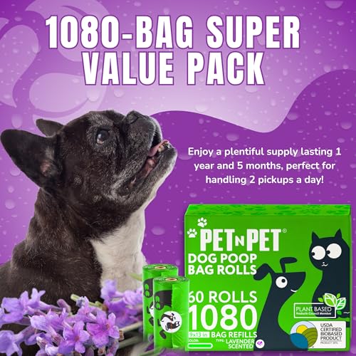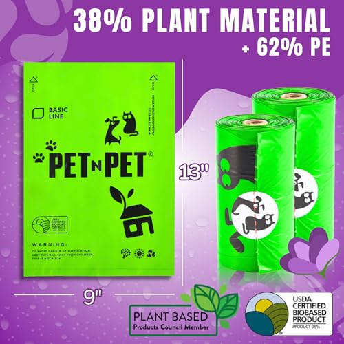 Specification: Pet N Pet 1080 Counts Green, Lavender Scented Poop Bags for Dogs, 38% Plant Based & 62% PE Dog Poop Bags Rolls, 9″ x 13″ Thick Dog Bags for Poop, Doggie Poop Bags, Cat Litter Bags, Kitty Litter Bags