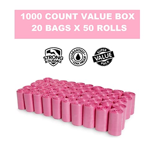 Pink Poop Bags – 1000 Count Dog Waste Bags, Cat Litter Bags, EZ Pick Up Dog Waste Disposal Bags, 9″x12″ Large