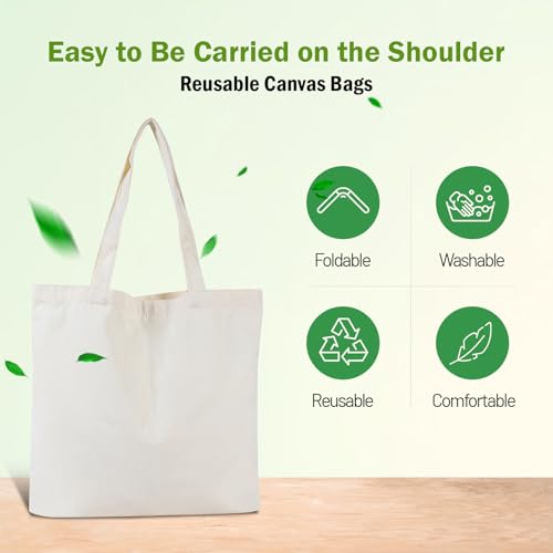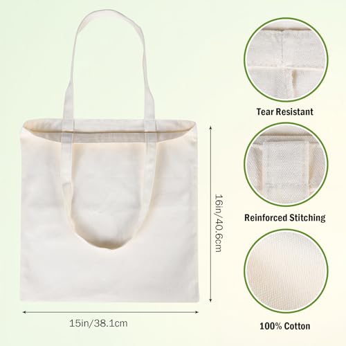 12-Pack 16 * 15IN Canvas Tote Bags Multipurpose Reusable Grocery Bag for Creative DIY, Gift Bags, Shopping Bags
