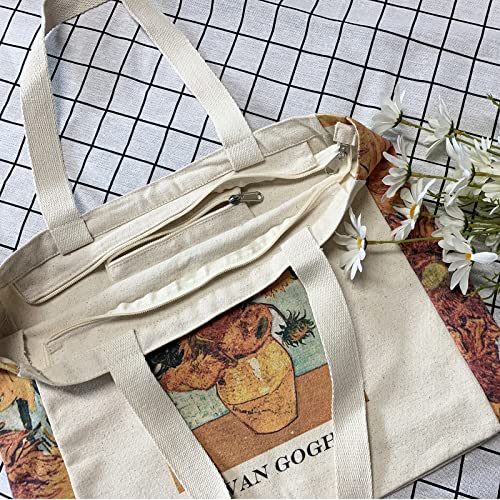Specification: BROADREAM Canvas Tote Bag Aesthetic Shoulder Bag with Zippers and Interior Pocket