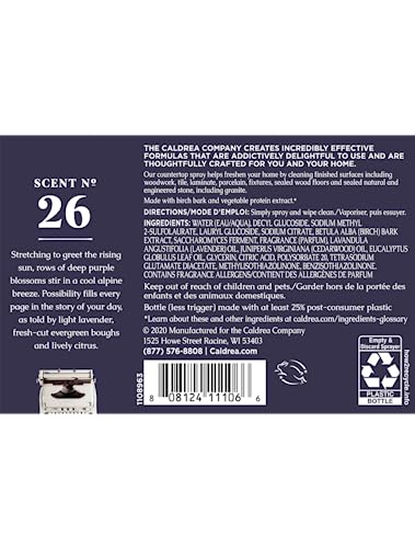 Caldrea Lavender cedar leaf counter top Spray surface cleaner refreshes home and mind with Little effort. Simply spray and wipe clean. Basil, Lemon, lavender, Spearmint and sage top notes leave you wanting more, while Basil, sage, Thyme, spearmint and rosemary essential oils create an intricate, harmonious fragrance. This surface cleaner uses a special Vegetable Protein Extract to quickly remove odors. Safe, hardworking and effective on all non-porous surfaces including natural stone, it makes a great addition to all cleaning supplies.