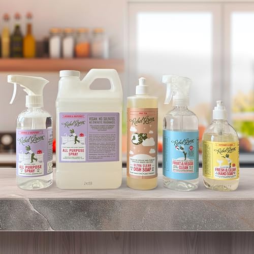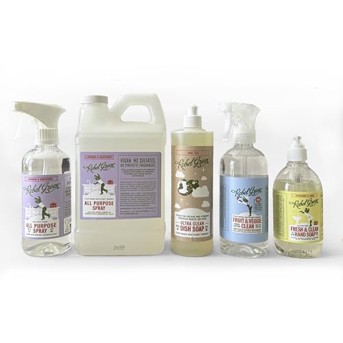 Rebel Green Complete Home Care 5 Pack Gift Set – Includes Natural Fruit & Veggie Wash, Hand Soap, Dish Soap, All Purpose Cleaner 16oz, & All Purpose Cleaner 64oz – Natural Household Cleaning Products
