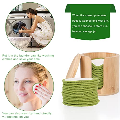 UNIMEIX 16 Pack Reusable Makeup Remover Pads Bamboo Reusable Cotton Rounds Organic Cotton Pads for Face Facial Cleansing Wipes with Washable Laundry Bag and Bamboo Holder