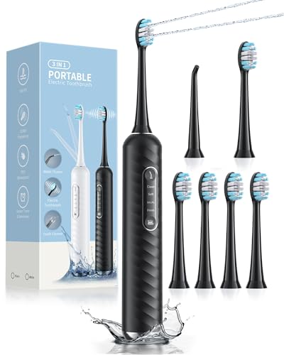 Specification: Electric Toothbrush with Water Flosser, 3 in 1 Cordless Toothbrush and Water Flosser Combo for Multiple Users and Needs, Flossing Toothbrush Portable for Travel and Home, 10 Piece Set,Black