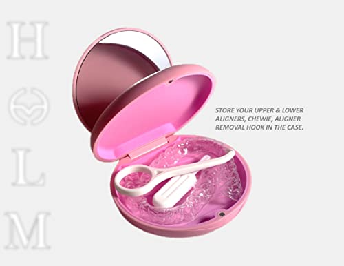 Specification: HOLM Retainer and Aligner Case with Mirror, Removal tool and Chewie for Oral Care, Slim Travel size Orthodontic Clear Retainer Box, Dental Mouth Guard Container, Night Guard (Pink)