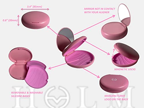 HOLM Retainer and Aligner Case with Mirror, Removal tool and Chewie for Oral Care, Slim Travel size Orthodontic Clear Retainer Box, Dental Mouth Guard Container, Night Guard (Pink)