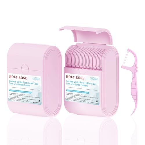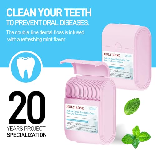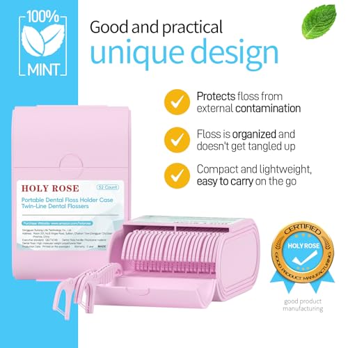 Specification: Holy Rose Pink Dental Floss Picks, 2 Travel Floss Cases with Twin Line Flosser 104 Count,Mint Flavored,Floss Sticks Toothpicks is Oral Care Tool for Clean and Fresh Teeth.
