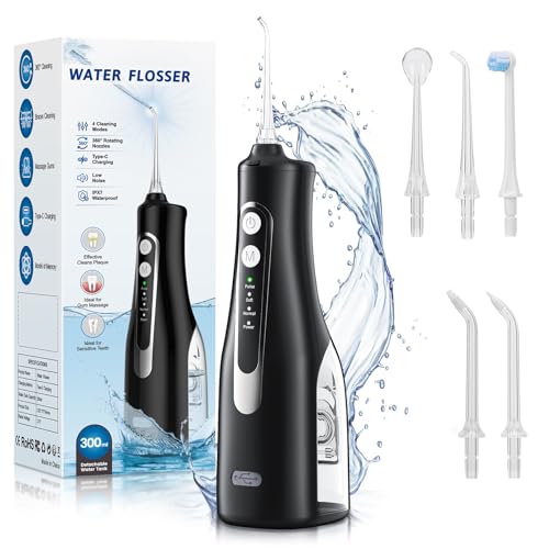Specification: Water Dental Flosser Teeth Pick – 4 Modes Cordless Oral Irrigator – 300ML Portable and Rechargeable IPX7 Waterproof – Water Dental Piks for Cleaning for Home Travel