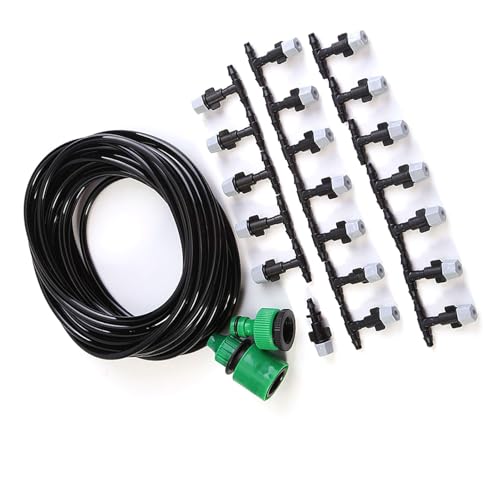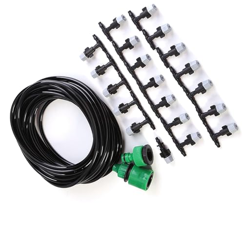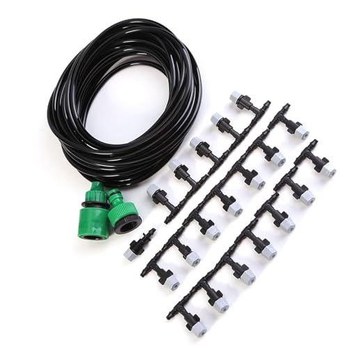 Specification: Misting Cooling System,4/7mm Watering Tubing,Misting Nozzle Sprinkler,Faucet Adapter Outdoor Garden Patio Greenhouse Micro Drip Irrigation Kit (10M Watering Set)