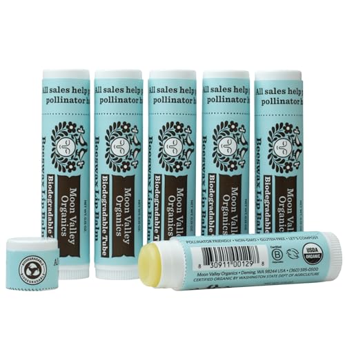 Moon Valley Organics Beeswax Lip Balm for Moisturizing Lips and Cuticles (COOL MINT VANILLA, 6-Pack)