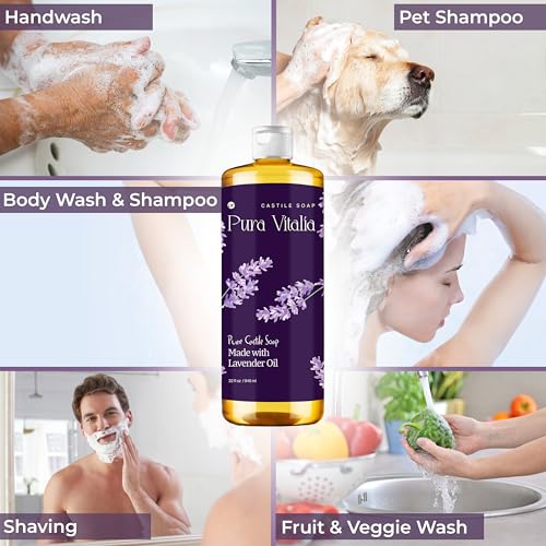 ALL PURPOSE & NATURAL: Pura Vitalia Lavender Castile is a one-stop and natural solution for all cleaning needs. Crafted from natural ingredients, whether for your face, hand, dishes, surfaces, or body, this castile soap can make everything clean and refreshed, with a soothing lavender fragrance.