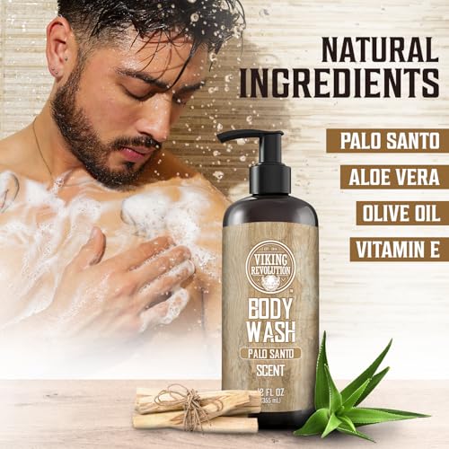 Viking Revolution Palo Santo Body Wash for Mens Shower Gel – Moisturizing Mens Body Wash with Vitamin E and Aloe Vera – Shower Gel Body Wash Men (12 Fl Oz, Pack of 1)