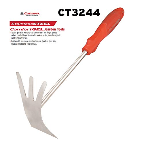 Easily put off deep-rooted weeds in your lawn or garden with Corona’s ComfortGEL® StainlessSTEEL Weeder. This weed puller features a fork-tipped blade and serrated cutting edges to easily put off any roots and weeds that stand in the way of a well-manicured garden. The stainless steel head is designed to withstand breakage and rust for long-lasting durability. Featuring a ComfortGEL® grip to reduce hand and wrist fatigue, in addition to an anti-slip thumb riser and finger guard for added safety, this weeding tool is built to keep you comfortable all through long hours of hard work. Reach for the Corona ComfortGEL® Weeder StainlessSTEEL to eliminate pesky weeds season after season.