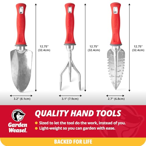 Garden Weasel 3-Piece Hand Tool Combo Set | Trowel, Transplanter and Cultivator | Heavy Duty Lawn and Garden Set, Digging, Planting, and Weeding | 91370-Q
