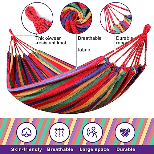 Specification: Windyun 2 Sets Cotton Canvas Hammock Large Double Hammock 400lbs Portable Camping Hammocks for Outside with Carrying Bag Sturdy Metal Knot Ropes and Tree Straps for Travel Patio Garden Backyard (Red)