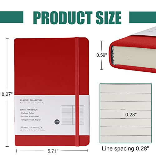 Specification: Lined Journal Notebook, 6Pack(red), 160 Pages, Medium 5.7 inches x 8 inches – 100 gsm Thick Paper, Hardcover