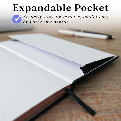 ✔️ ELASTIC BAND & EXPANDABLE POCKET: Features an inner pocket for storing notes, keepsakes, and cards, with an elastic band closure that assists in keeping your journal securely closed.