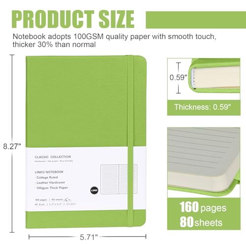 Lined Journal Notebook, Hardcover College Ruled Notebook, 100Gsm Premium Thick Paper, Medium 5.7″ x 8″, 160 Pages, 1Pack (GREEN)