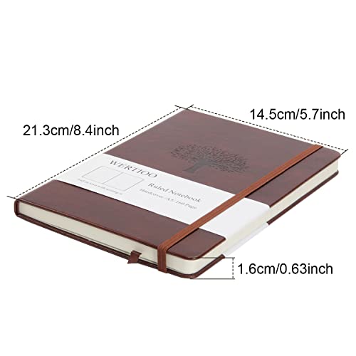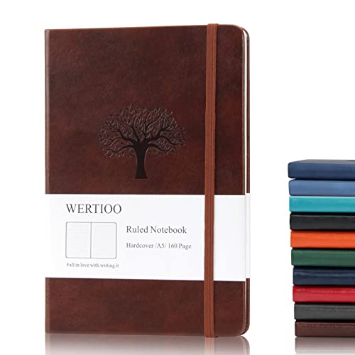 WERTIOO Journals Notebooks, Leather Diary Hardcover Classic Writing Notebook A5 160 Pages 100 gsm Thick Paper Business for Men Women (Ruled, Brown)