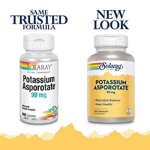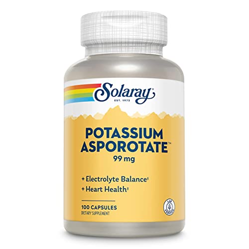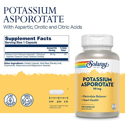 Specification: Solaray Potassium Asporotate Chelated Supplement, Electrolyte Balance & Heart Health Support, 100 Servings, 100 Capsules