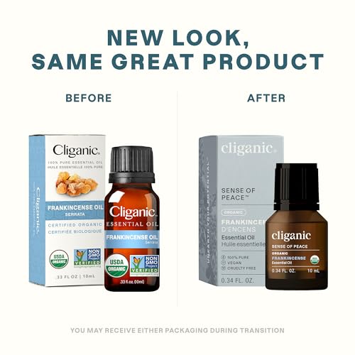 Specification: Cliganic USDA Organic Frankincense Essential Oil – Boswellia Serrata, 100% Pure Natural Undiluted, for Aromatherapy | Non-GMO Verified (Packaging May Vary)