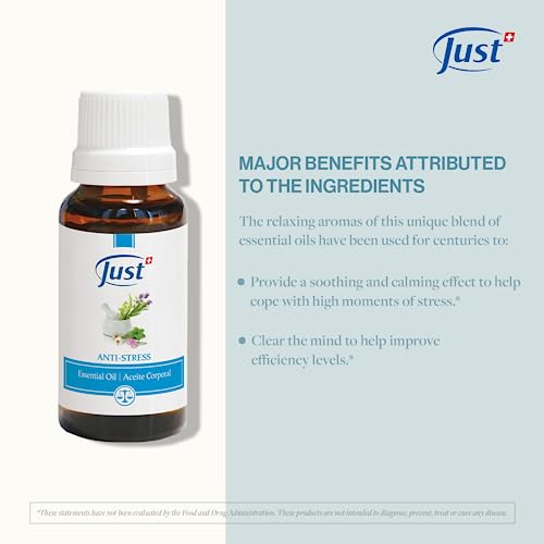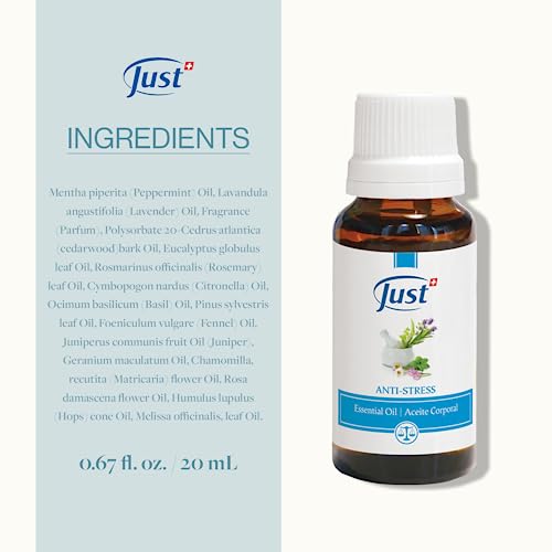 Specification: Swiss Just Stress Relief, Anti-Stress Activator Essential Oil 20ml. A Specific & Balanced Blend of 15 Natural Essential Oils. with Basil & Lavender Extract, 20 ml
