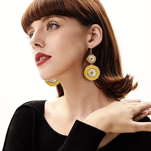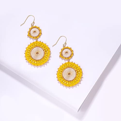 Badu Seed Beaded Circle Beads Earrings Bohemian Dangle Earrings Handmade Bead Fashion Jewelry Drop Earrings for Women