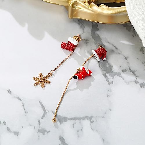 BriLove Christmas Earrings Snowflake Santa Claus Threader Tassel Earrings for Women Sock Xmas Hat Earrings Party Gifts Fashion Jewelry Ruby Color Gold-Tone