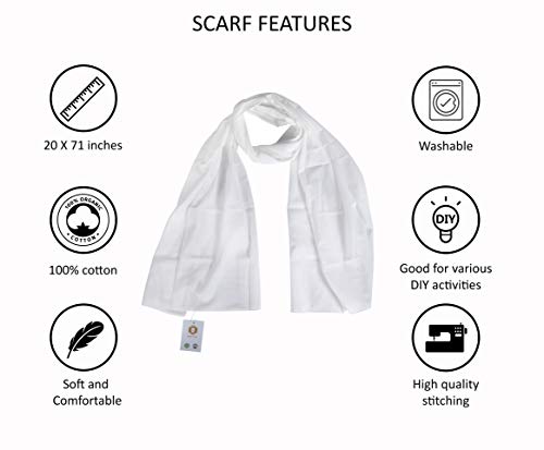 White Scarf and Plain Tote Bag | Things Items to Tie Dye | Party Supply DIY | Women Cotton Neckerchief & Long Handle Bags | Perfect for Kids Ladies Fashion Craft Canvas Activity and Gifts