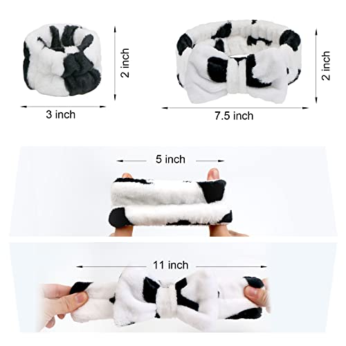 Yoseng Spa Headband and Wrist Towels for Washing Face, Set of 6 – Cow print,White (HAIRBAND, Face Washing Headbands, Hair Care, All Ages, Adults, Unisex, 1 Count Package)
