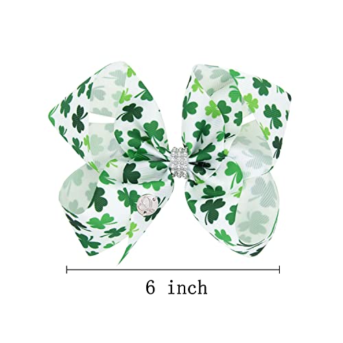 4 Pcs Large Shamrock Hair Bows, 6 Inch Handmade Grosgrain Ribbon Alligator Clip Hair Accessories for St. Patrick’s Celebration