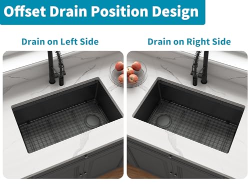 Sink Offest Qucik Drain: Sinks can also be mounted on either the left or right side, under sink plumbing and garbage disposal are situated on one side, freeing up more cabinet space for storage, and the ground is designed to empty quickly and completely
