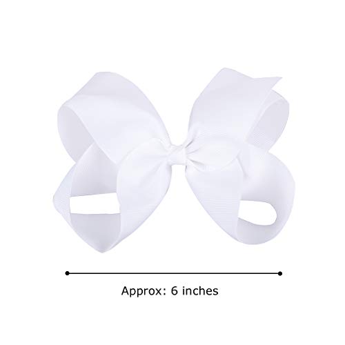 DEEKA 12 PCS 6″ Big Hand-made Grosgrain Ribbon Hair Bow Alligator Clips Hair Accessories for Little Teen Toddler Girls – White