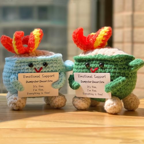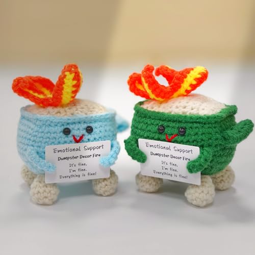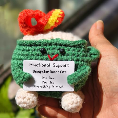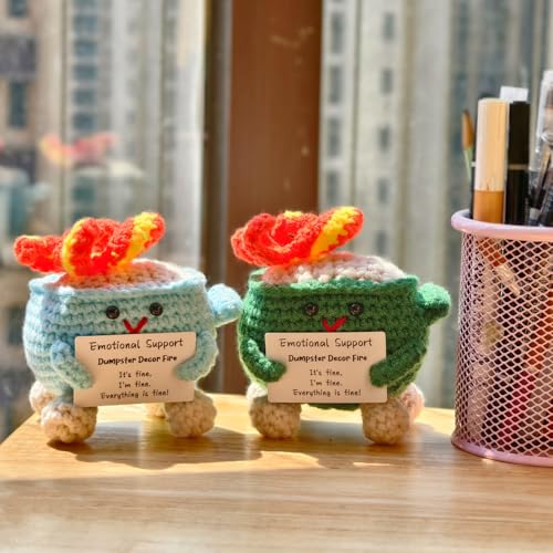 1. Unique Design: The Levvohd Emotional Support Dumpster Decor Fire is a funny and handmade crochet knitting doll that adds a touch of humor to any office space. Its cute design, featuring a dumpster on fire, is sure to catch the attention of anyone who sees it