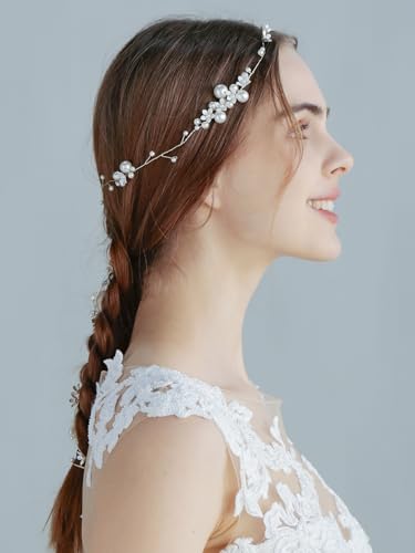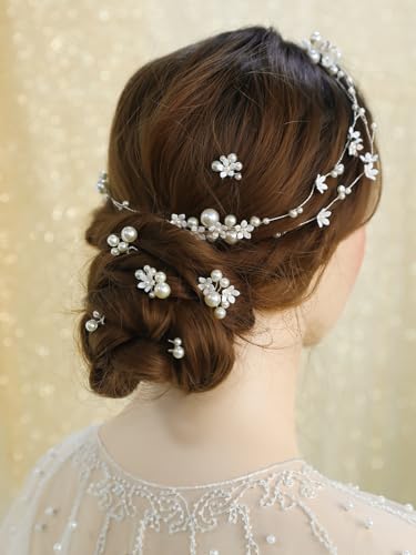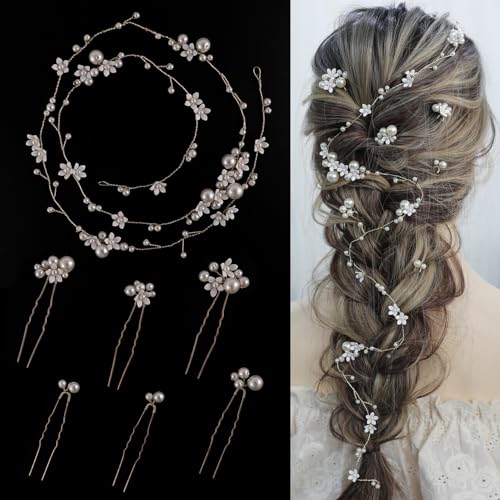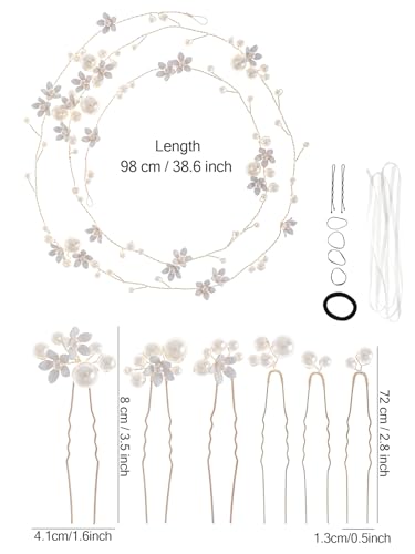 Specification: Handmade Pearl Bridal Hair Vine, Wedding Hair Accessories Sparkling Pins Set Bride Wedding Pieces for Women and Girls Hair Jewelry Brides Headpieces Crystal 40” Light Gold 7 Pcs