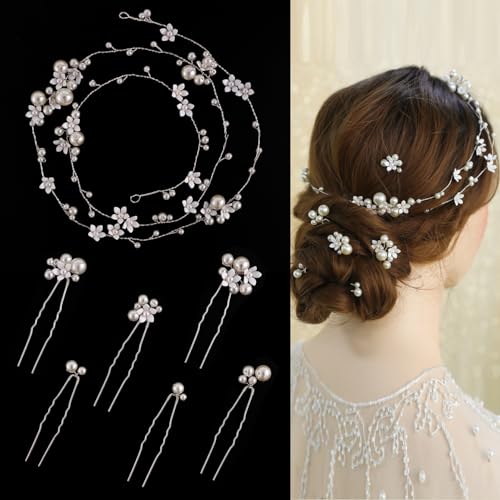 Specification: Handmade Pearl Hair Vine Set, 7 Pcs Hairband with Sparkling Pins for Women and Girls, Wedding Hair Accessories, Bridal Headband, Headpieces Crystal for Special Occasions