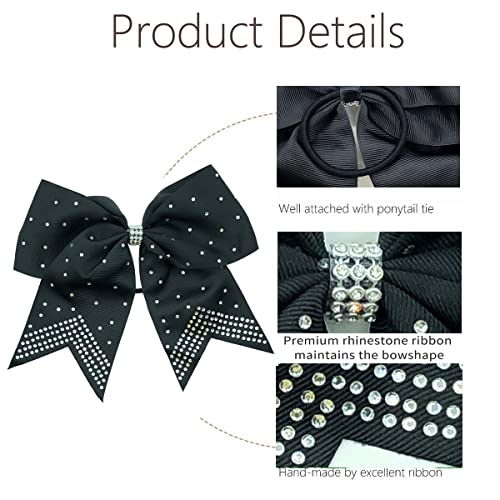Specification: Hipcheer 12PCS 8″ Rhinestones Large Cheer Hair Bows for Girls, Hand-made Grosgrain Ribbon Hair Accessories for Teen Girls Softball Cheerleader Sport (Black)