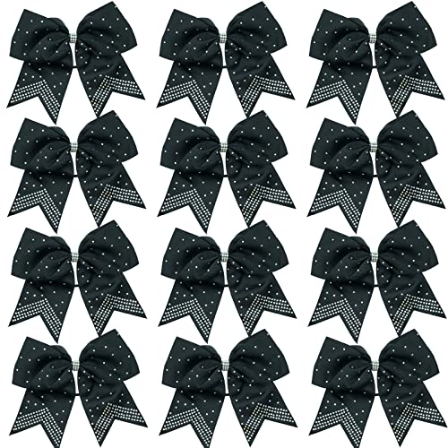 Hipcheer 12PCS 8″ Rhinestones Large Cheer Hair Bows for Girls, Hand-made Grosgrain Ribbon Hair Accessories for Teen Girls Softball Cheerleader Sport (Black)