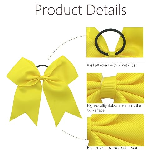 Specification: Hipcheer 20pcs 8″ Large Cheer Bows for Girls, Hand-made Grosgrain Ribbon Hair Accessories for Teen Girls Softball Cheerleader Sports (Yellow)